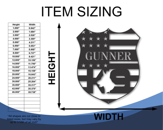 Custom Metal K9 Police Wall Art | Indoor Outdoor | Up to 46" | 20+ Color Options