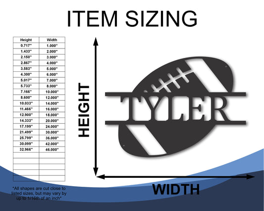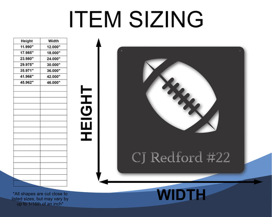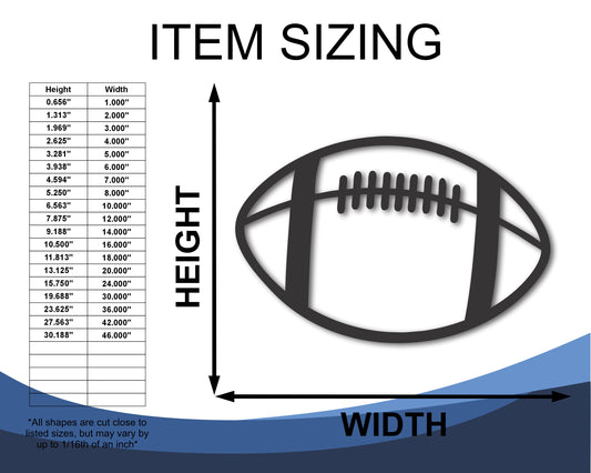 Custom Metal Football Wall Art | Indoor Outdoor | Up to 46" | 20+ Color Options