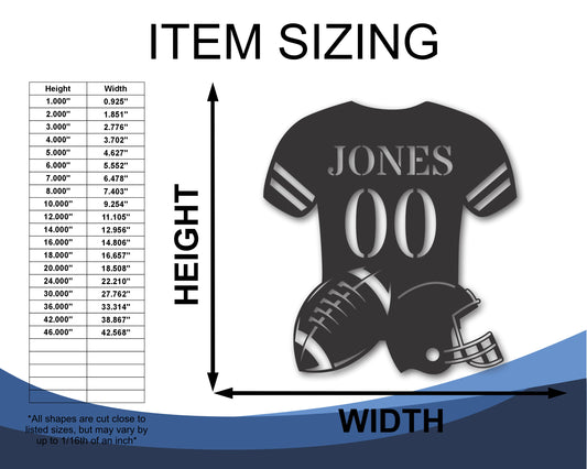 Custom Metal Football Jersey Wall Art | Indoor Outdoor | Up to 46" | 20+ Color Options