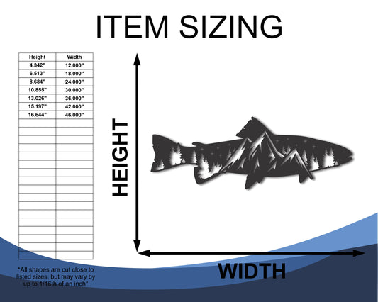Metal Trout Mountain Wall Art - Metal Mountain Landscape - 20+ Color Options