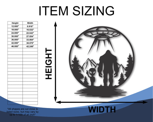 Custom Metal Bigfoot and Grey Alien Wall Art | 20+Color Options