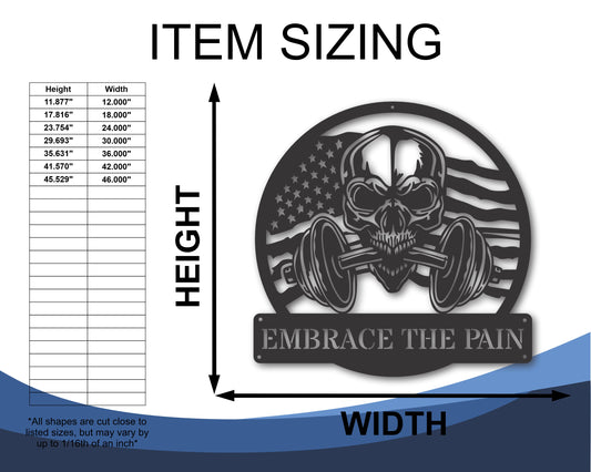 Custom Metal American Fitness Skull Wall Art - Custom Metal Gym Decor - 20+Color Options