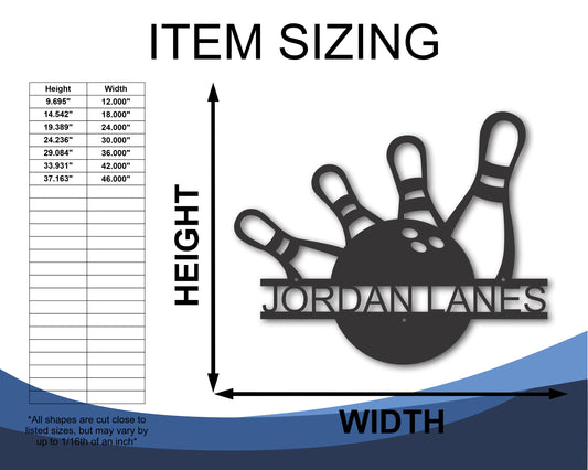 Custom Metal Bowling Strike Wall Art - Custom Metal Sports Sign - 20+ Color Options