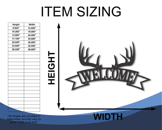 Metal Deer Antler Welcome Sign | Metal Buck Antlers Welcome Sign | 20+ Color Options