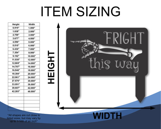 Custom Metal Fright This Way Yard Stake | Indoor Outdoor | Up to 46" | 20+ Color Options