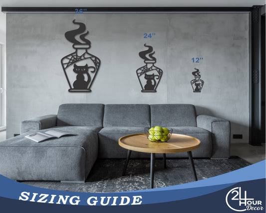 Custom Metal Halloween Cat Potion Bottle Wall Art | Indoor Outdoor | Up to 46" | 20+ Color Options