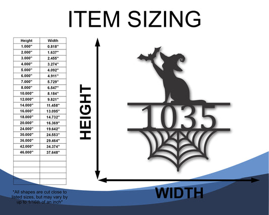 Custom Metal Halloween Cat Address Wall Art | Indoor Outdoor | Up to 46" | 20+ Color Options