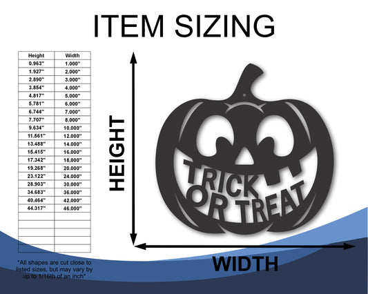 Custom Metal Trick or Treat Pumpkin Wall Art | Indoor Outdoor | Up to 46" | 20+ Color Options