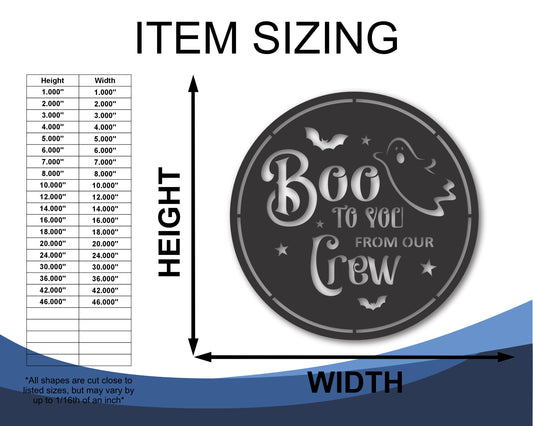 Custom Metal Boo To You From Our Crew Wall Art | Indoor Outdoor | Up to 46" | 20+ Color Options