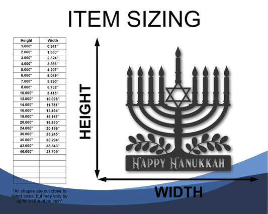 Custom Metal Happy Hanukkah Wall Art | Indoor Outdoor | Up to 46" | 20+ Color Options