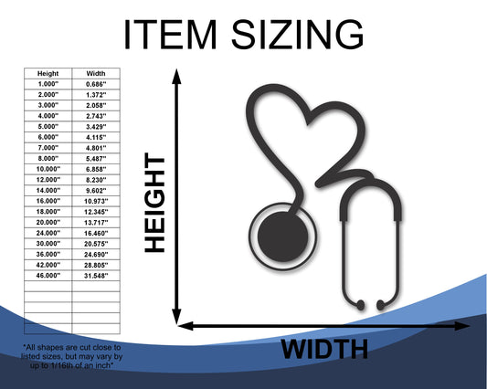 Custom Metal Heart Stethoscope Wall Art | Indoor Outdoor | Up to 46" | 20+ Color Options