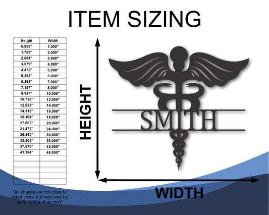 Custom Metal Caduceus Wall Art | Indoor Outdoor | Up to 46" | 20+ Color Options