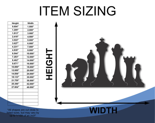 Custom Metal Chess Wall Art | Indoor Outdoor | Up to 46" | 20+ Color Options