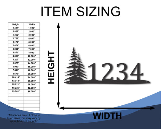 Custom Metal Pine Tree Address Wall Art | Indoor Outdoor | Up to 46" | 20+ Color Options