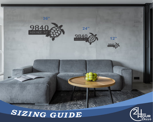 Custom Metal Sea Turtle Address Wall Art | Indoor Outdoor | Up to 46" | 20+ Color Options