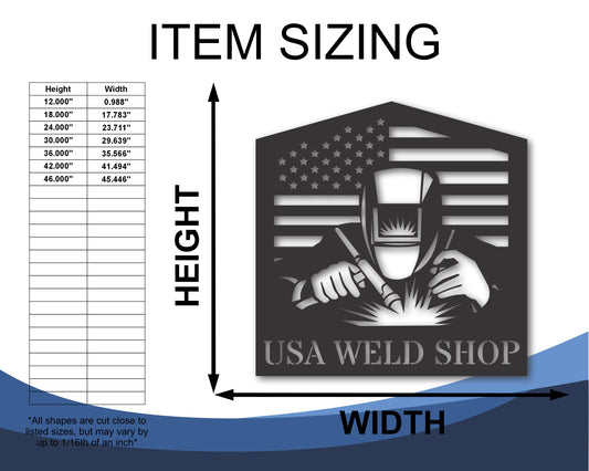 Custom Metal USA Welding Wall Art | Manufacturing Patriotic Decor | Indoor Outdoor | Up to 46" | 20+ Color Options