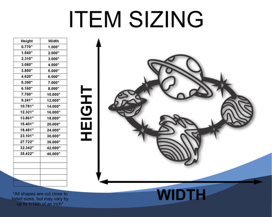 Custom Metal Solar System Wall Art | Indoor Outdoor | Up to 46" | 20+ Color Options