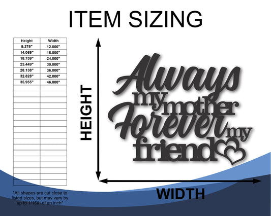 Metal Mothers Day Wall Art | Metal Always My Mother Forever My Friend Sign | 20+ Color Options