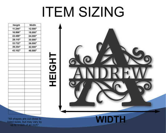 Metal Split Letter Vine Monogram | Customizable Wall Art | Indoor Outdoor | Up to 46" | Over 20 Color Options