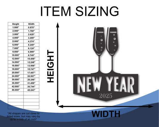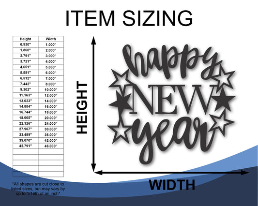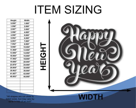 Custom Metal Happy New Year Wall Art | Indoor Outdoor | Up to 46" | 20+ Color Options