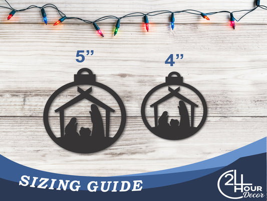 Custom Metal Nativity Scene Bulb Ornament | 4" to 5" | 20+ Color Options