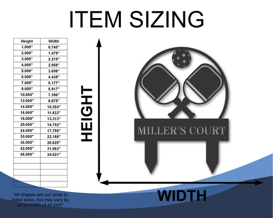 Custom Metal Pickleball Yard Stake | Indoor Outdoor | Up to 46" | 20+ Color Options