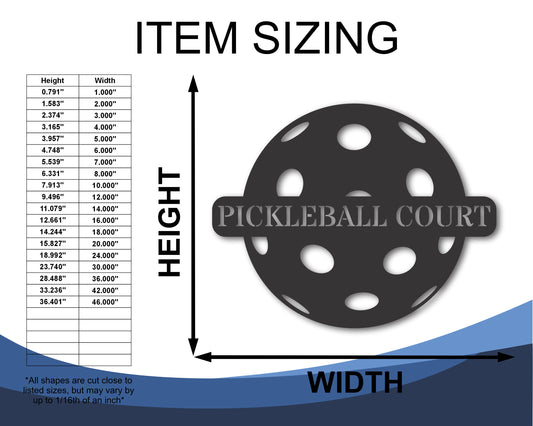 Custom Metal Pickleball Wall Art | Indoor Outdoor | Up to 46" | 20+ Color Options