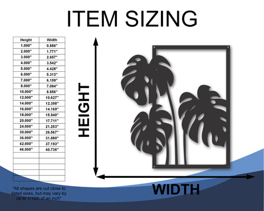 Custom Metal Monstera Plant Wall Art | Indoor Outdoor | Up to 46" | 20+ Color Options