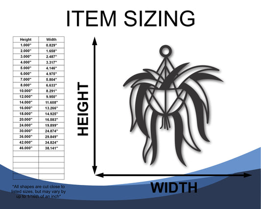 Custom Metal Hanging House Plant Metal Wall Art | Indoor Outdoor | Up to 46" | 20+ Color Options