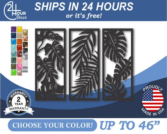 Custom Metal Leaf Panels (3pc.) Wall Art | Indoor Outdoor | Up to 46" | 20+ Color Options
