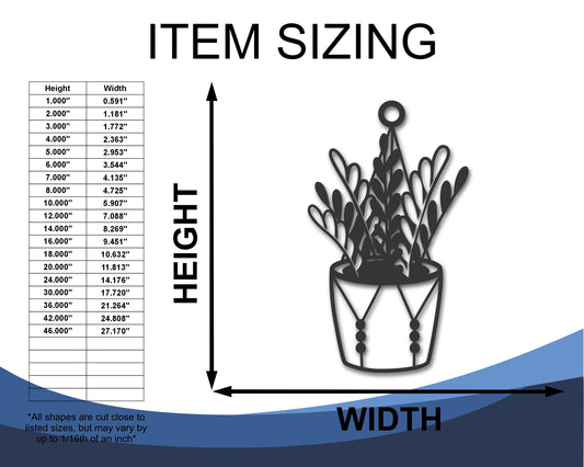 Custom Metal Hanging Plant Metal Wall Art | Indoor Outdoor | Up to 46" | 20+ Color Options
