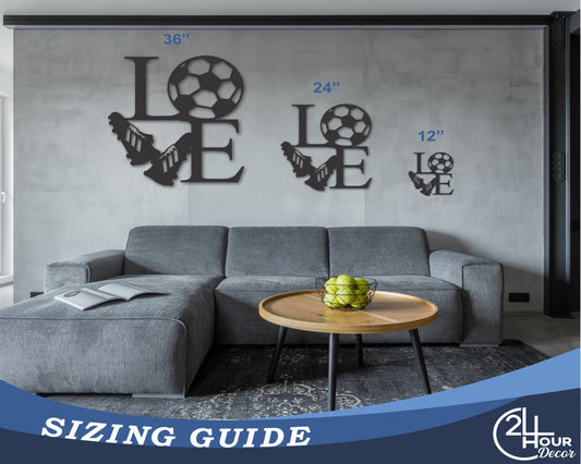 Metal Soccer Love Wall Art - Metal Sports Sign - 20+ Color Options