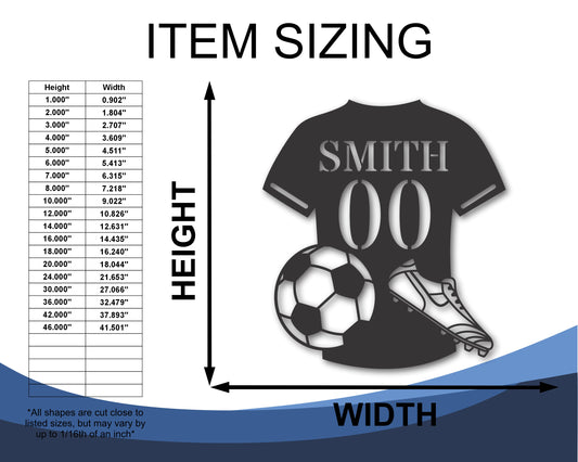 Custom Metal Soccer Jersey Wall Art | Indoor Outdoor | Up to 46" | 20+ Color Options