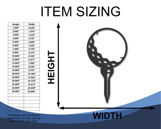 Custom Metal Golf Ball and Tee Wall Art | Indoor Outdoor | Up to 46" | 20+ Color Options