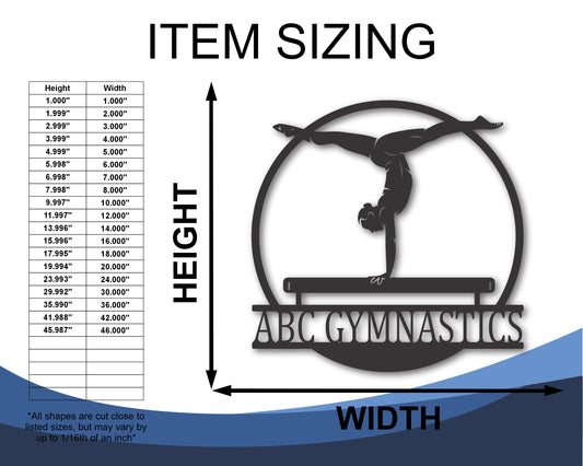 Custom Metal Gymnastics Wall Art | Indoor Outdoor | Up to 46" | 20+ Color Options