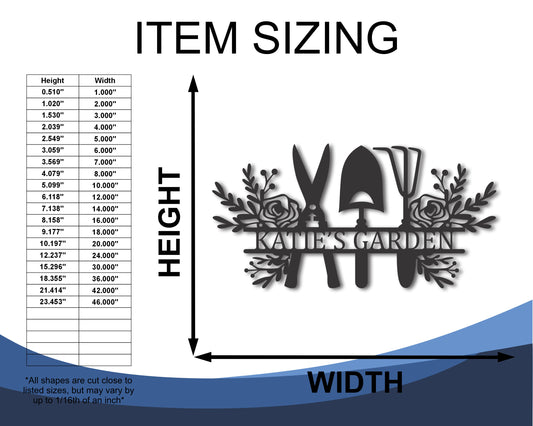 Custom Metal Garden Tool Wall Art | Indoor Outdoor | Up to 46" | 20+ Color Options