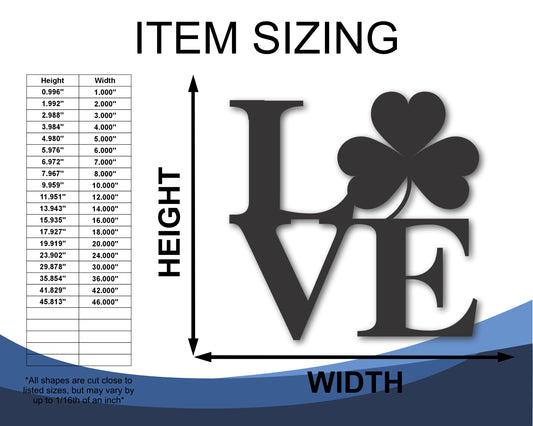 Custom Metal Love Shamrock Wall Art | Indoor Outdoor | Up to 46" | 20+ Color Options
