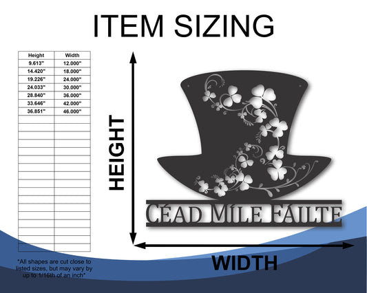 Metal St Patrick's Day Hat Wall Art - Metal Irish Sign - 20+ Color Options