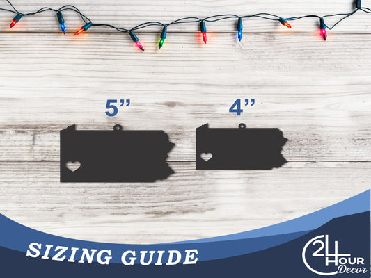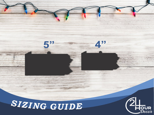 Custom Metal Pennsylvania State Ornament | 4" to 5" | State Ornaments | 20+ Color Options
