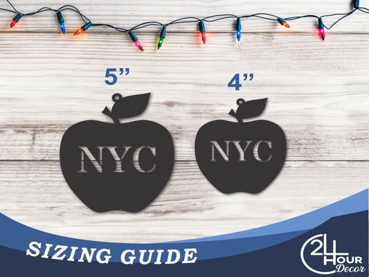 Custom Metal NYC Apple New York State Ornament | 4" to 5" | State Ornaments | 20+ Color Options