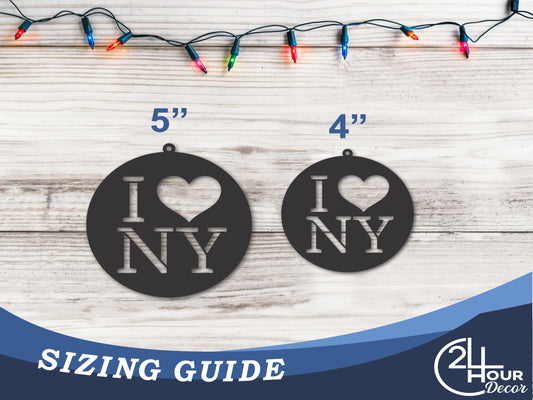 Custom Metal I Love NY New York State Ornament | 4" to 5" | State Ornaments | 20+ Color Options