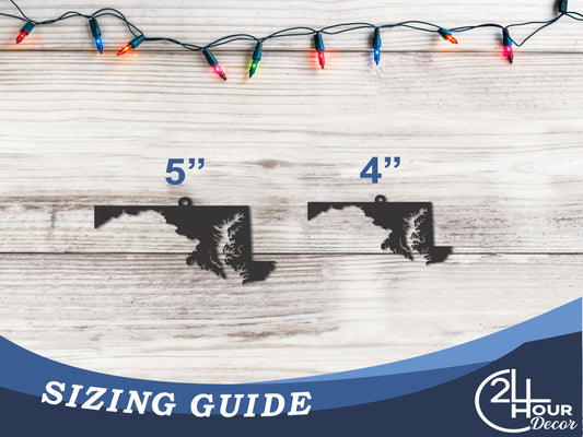 Custom Metal Maryland State Ornament | 4" to 5" | State Ornaments | 20+ Color Options