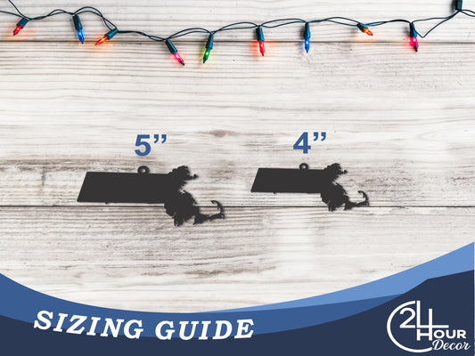 Custom Metal Massachusetts State Ornament | 4" to 5" | State Ornaments | 20+ Color Options