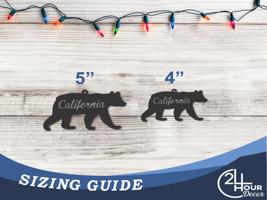 Custom Metal California Bear Ornament | 4" to 5" | State Ornaments | 20+ Color Options