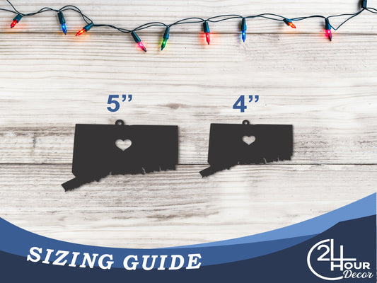 Custom Metal Connecticut State Ornament | 4" to 5" | State Ornaments | 20+ Color Options