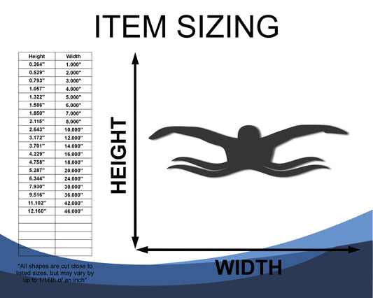 Custom Metal Swimming Wall Art | Indoor Outdoor | Up to 46" | 20+ Color Options