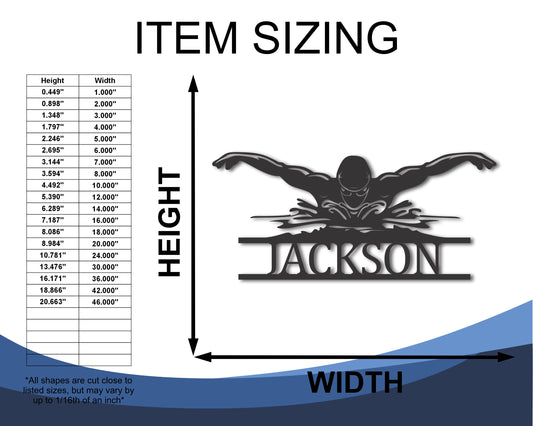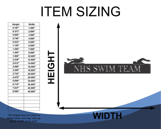 Custom Metal Swim Wall Art | Indoor Outdoor | Up to 46" | 20+ Color Options