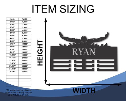 Custom Metal Swimming Medal Hanger Wall Art | Indoor Outdoor | Up to 46" | 20+ Color Options