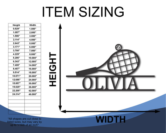 Custom Metal Tennis Racket Wall Art | Indoor Outdoor | Up to 46" | 20+ Color Options