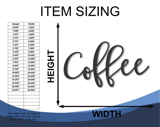 Custom Metal Coffee Script Wall Art | Indoor Outdoor | Up to 46" | 20+ Color Options
